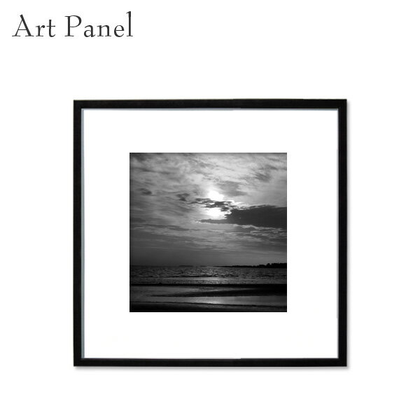 モノトーンパネル アート 海 夕日 白黒 スクエア 展示 店舗 内装 ディスプレイ 壁面 空間 風景 絵画 ポスター 写真 額縁