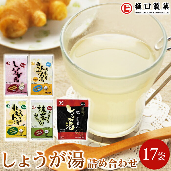 <お礼の品提供・発送事業者>株式会社樋口製菓/TEL0848-44-1689 原材料名 砂糖(甜菜(北海道産))、生姜・馬鈴薯澱粉(遺伝子組換えでない)、加工黒糖、黒糖、れもん、きんかん、抹茶/ビタミンC、香料 内容量 しょうが湯(15gx4)6袋、 まるごとれもん湯(10gx4)6袋、 まるごときんかん湯(10gx4)2袋、 とろ〜り抹茶かたくり(15gx4)2袋、 蒸し生姜入しょうが湯(20gx5)1袋 賞味期限 生姜湯:製造日より2年、他3品:製造日より1年 保存方法 直射日光を避け、常温で保存ください。