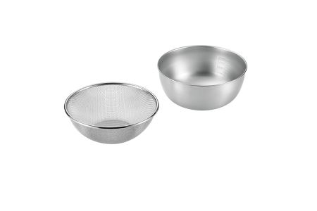 ザルを重ねて使用出来るボウルは耐久性に優れるステンレス製で、少し深めでつかみ易く、混ぜる・こねるがしっかり出来る形状です。