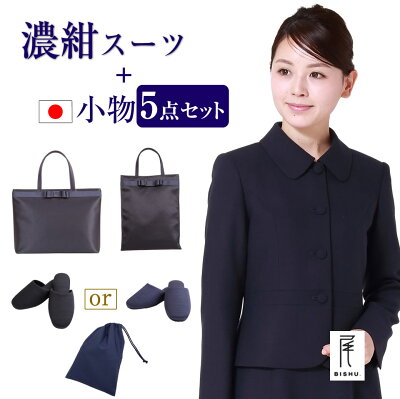 【お受験ママ】 日本製 ウール100% 濃紺スーツ お受験グッズ 5点セット 濃紺 ウールアンサンブルスーツ 濃紺アンサンブル お受験スーツ 日本製 トートバッグ サブバッグ ヒールスリッパ スリッパ収納袋 セット お受験 紺 面接 学校見学 面談 説明会 小物 バッグ PFKB-0205