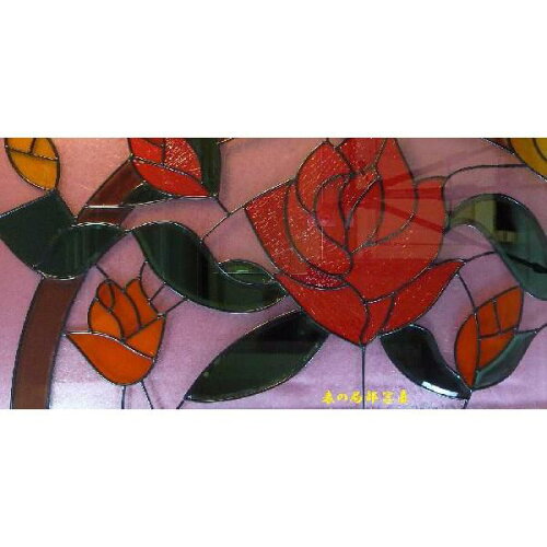 【ステンドグラス ステンドガラス デザインパネル】インテリア【ステンドグラス ステンドガラス デザインパネル】インテリア◇ステンドグラス600x1300mmデザインパネル材料雑貨窓ドア壁美しいステンドガラス赤い花sgm601◇★