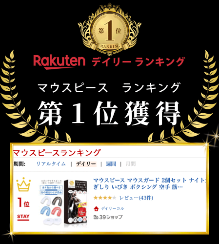 商品情報カラークリア(透明)クリアブラック(黒)クリアブルー(青)クリアレッド(赤)※お好きなカラーの組み合わせをご選択ください本体仕様サイズ(約):5.2×5.2本体材質:シリコンケース材質:PP樹脂製品内容【製品内容】・マウスピース本体×2・マウスピースケース×2・パッケージ(裏面に成型手順記載)マウスピース マウスガード 2個セット ナイトガード 食いしばり 防止 グッズ 食いしばり防止 歯ぎしり 歯軋り はぎしり いびき ボクシング 筋トレ スポーツ 空手 野球 筋力トレーニング 格闘技 トレーニング 睡眠 スポーツ用 専用ケース付き 個別にカラーが選べる お好みのカラーを個別に選択しご購入いただけます! 例) クリアブラック(黒)×クリアブルー(青) スポーツ用マウスピース(マウスガード)は、ボディーコンタクトや、強い負荷のかかる食いしばりの際など、口内の様々な危険を防止します。