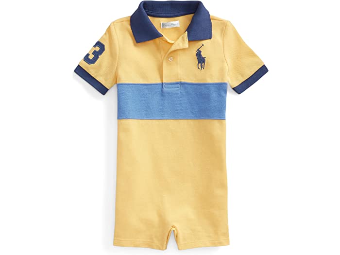 (取寄) ラルフローレン キッズ ボーイズ ビッグ ポニー コットン メッシュ ポロ ショートール (インファント) Polo Ralph Lauren Kids boys Big Pony Cotton Mesh Polo Shortall (Infant) Empire Yellow Multi